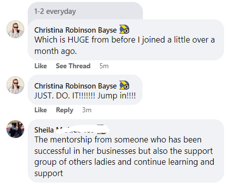 >> Access to Carina for questions via direct messenger and her personal email address (Value: $4,728)